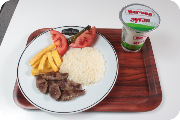 İçindekiler: 50gr Köfte, Patates, Ayran, Pilav